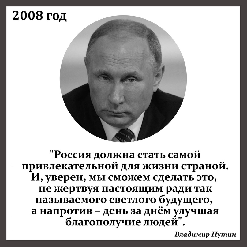 После обращения Путина к народу в понедельник стало ясно ГАРАНТ отказывает НАРОДУ в СПРАВЕДЛИВОСТИ. В публичном поле министру обороны и "элиткам" были предъявлены обвинения в совокупности тянущие на ВЫСШУЮ МЕРУ наказания. И вместо проведения проверок согласно законам РФ нам говорят о том, что ГАРАНТ СКАЛА, КОТОРЫЙ ИМЕЕТ МОРАЛЬНОЕ ПРАВО ИГНОРИРОВАТЬ ИНТЕРЕСЫ РОССИИ Ленин и Сталин - создатели и строители социализма не позволяли себе личных друзей, которые были бы "Своя рубашка ближе к телу". Им весь народ был товарищами. При строительстве буржуазно-олигархической системы получается совсем другая мораль и другой этикет. "Друзья господа - свои", а народ простолюдины - никто
