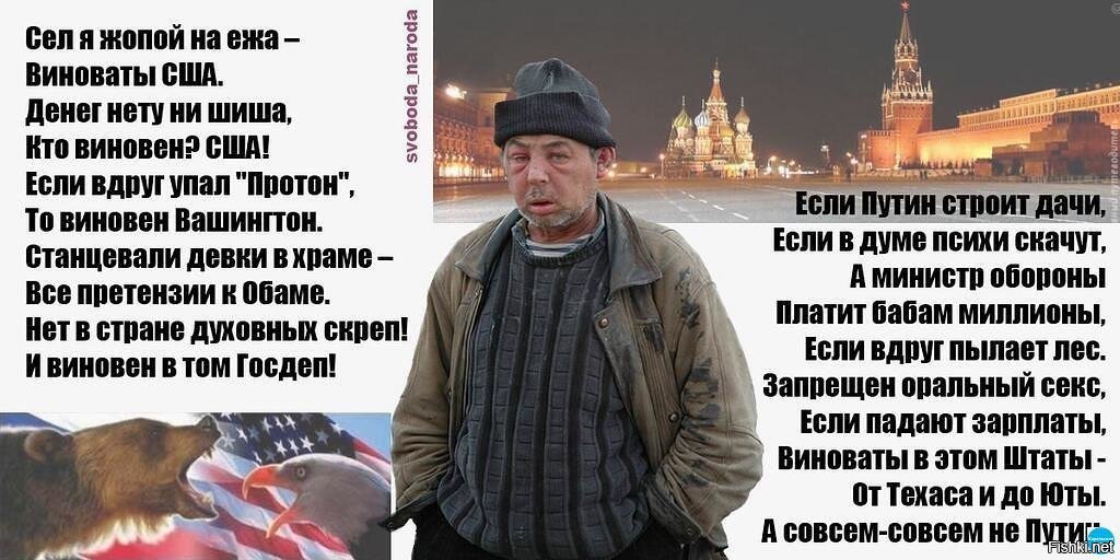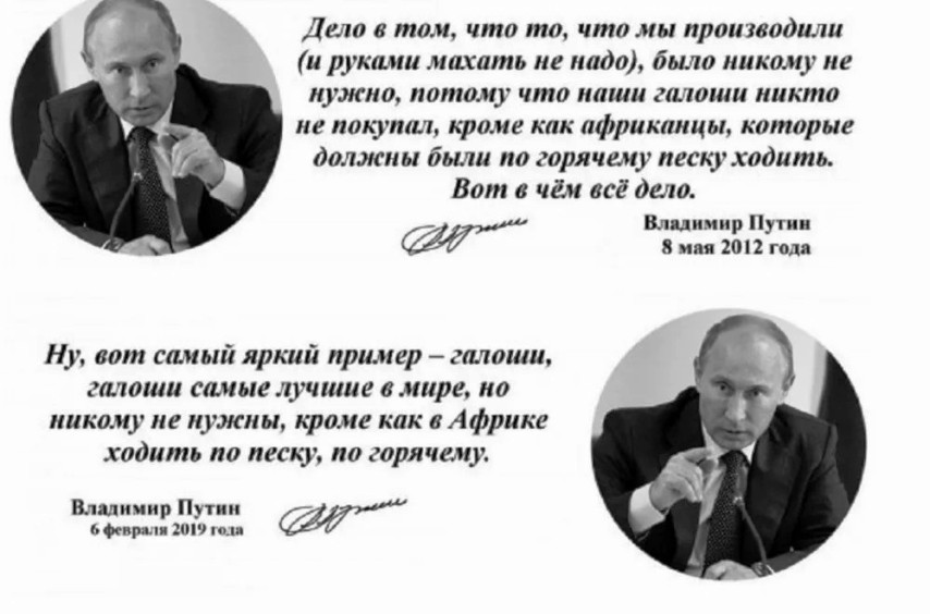 Ключевой - и неисправимый - порок самого Путина и всех его подчинённых: патологическое отсутствие чувства юмора! Они настолько глупы, что не понимают, насколько глупо выглядят со своим пафосом. Каждый поход Путина в туалет - гениальный, каждый чих - судьбоносный. Каждый бабах на линии фронта - это коренной перелом в ходе войны... И так каждый день! Война уже вся из себя в корне переломанная, шестьсот раз подряд, после каждого брифинга Конашенкова... Только линия фронта почему-то и на волос не сдвигается. Это люди слов, а не дел. Они не могут предъявить никаких плодов своей деятельности, кроме трёпа в телевизоре. И Второй Рейх кайзера был скромнее в выражении своих чувств: "На Западном фронте без перемен". И тем более, Совинформбюро скромнее выражалось: "На фронтах