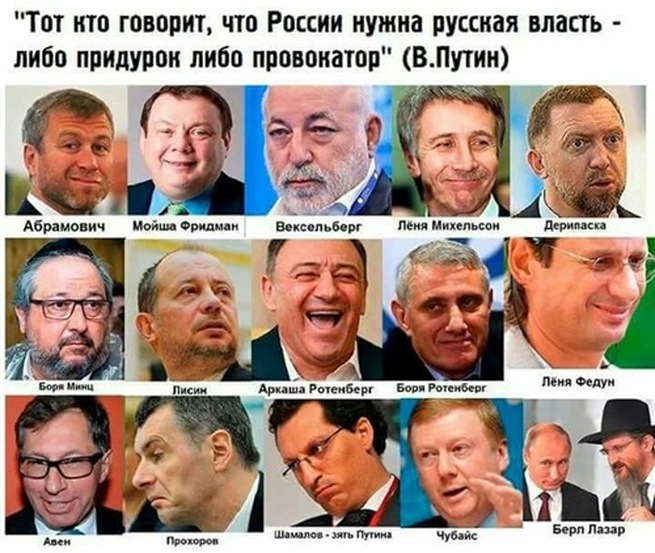 Путин - еврей! Путин - лицо системы, выстроенной при Ельцине, предательской по своей сути, заполненной дураками и предателями, к которым относятся и друзья Путина и сам он тоже соответствует системе, иначе не возглавлял бы её 24 года. Логично, али как?