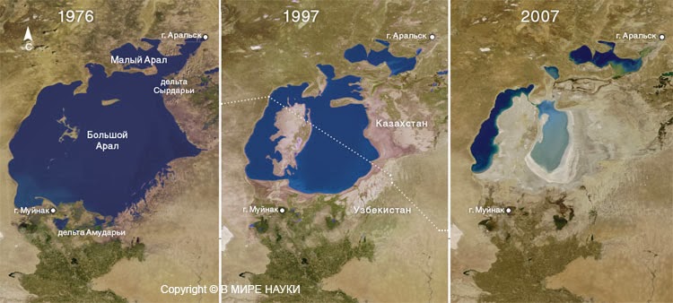 Открыть | ЗакрытьОткуда город? Глава 19.1 Каспаральское море Я автор этой статьи и автор термина Каспаральское море. Мысль написать статью об Арале приходила ко мне давно, но либо не было настроения, либо загрузка на работе не позволяла отвлечься на такое количество букв. Теперь на носу 2014 год, у студентов сессия, работы стало меньше и у меня появилось желание выговориться. В июне 1986 года забросила меня судьба в Кзыл-Ордынскую область, не то, чтобы по собственному желанию, просто долг родине нужно было отдавать, а в те времена это была не только почётная обязанность, а и миссия от которой сложно было уклониться, отмазаться получалось лишь у одного из тысячи. Голая, высушенная степь давила своей бесконечностью и пустотой ещё из окна поезда, станция Тюра-Там встретила нас едким запахом сухого камыша, и специфическим привкусом ещё не разогретой пустыни, был конец июня, пять часов утра. Упуская подробности, скажу - занесло меня на Байконур. Благодаря тому, что за спиной уже был первый курс политехнического института по специальности инженер-конструктор ЭВМ и РЭА, что такое электрический ток я знал не по наслышке. Попал я в учебку на 31 площадке. Там пришлось пройти Крым, Рым и медные трубы, а так-же 48 градусов в тени и многое другое. Но не это главное... Роя траншеи в степи по принципу "отсюда и до обеда" я часто наталкивался на морские ракушки в песке, не речные-тонкостенные, что можно было списать на близость Сырдарьи, а именно морские, с довольно толстыми и прочными стенками. В мае 1987 года, перед первым запуском ракетоносителя "Энергия" недалеко от 92-й площадки, будучи уже сержантом, я командовал взводом, который зарывал в землю корпус не запущенной ракеты "Протон", из него получалось отличное убежище для личного состава. Благодаря тому, что диаметр корпуса составлял 4,1 метра, яму пришлось рыть 7 метров глубиной. Ниже уровня 80 сантиметров попадались морские ракушки, и лишь глубже 1, 5 м. шел однородный песок и бурая глина. Я даже привёз несколько штук домой, жаль в последствии они потерялись. Пару строк воспоминаний
