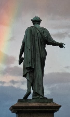 Выношу из комментариев под постом, автор Unknown: Таки да о Нашем Дюке... вылитый римский император... еще про меч короткий римский в ножнах слева на поясе в складках тоги упомянуть забыли, случайно обнаруженный при реставрации и отмывке памятника и никто бровью не повел при этом... только быстро заткнули рты увидевшим и прозревшим... На этом фото меч хорошо виден. В летописях упоминается, что ещё Иван Васильевич Грозный говорил о том, что его род идёт от римского императора Августа. Выходит до Ангела на Александрийском столпе стоял именно римский император Октавиан Август до самого конца XVIII века. В начале XIX века колонна опустела. Автор картинки немец Бертух, Фридрих Юстин / Friedrich Justin Bertuch (30 сентября 1747, Веймар - 3 апреля 1822, Веймар). Умер в 1822 году, изображение колонны сделано однозначно до 1822 года, то есть за 10 лет до ее официальной установки на Дворцовой площади. Взято отсюда: http://www.ebay.com/itm/350444145545 Такой вид колонны подтверждает официальный источник Александровская колонна в Петербурге . Вот так выглядела закладная платиновая медаль. А вот ещё одна гравюра датированная 1835 годом (думаю дата сильно завышена). Взято отсюда: http://www.hellopiter.ru/Alexandria_pillar_pic.html (Дату конечно же подправили, кто же поставит дату, что предшествует официальной установке колонны). Эту колонну до 1800 года я для себя буду называть Дюковской. Присмотритесь к статуе на колонне. Нет только посоха в руке, но мы его дорисуем. Самое интересное в том, что колонна стояла в городе ещё до его основания, присмотритесь к этим картинкам. Эрмитаж. История и архитектура зданий. Издательство "Аврора", Ленинград, 1974г., стр. 40-41. Архитектор Ф.Б.Растрелли уже работал над архитектурным комплексом с 1753 по 1762 годы, где в центре уже был предусмотрен памятник (так называемая Петровская колумна), именно на месте Александровской колонны, вокруг которого всё крутилось уже в то время, вот только тогда его считали памятником Петру I. А еще раньше, вопросом памятника, воспевающего великие победы Петра, в виде триумфальной колонны, занимался его отец - Бартоломео Карло Растрелли. Известно то, что колонну собирались устанавливать или восстанавливать на центральной городской площади ещё по указанию самого Петра. "Об интересе Петра к такого рода монументальным памятникам свидетельствует сделанный в 1717 г. перевод пояснений к гравюре с чертежами столпов. В них среди двадцати видов упоминаются «столпы исторические, которые репрезентуют дела воинские, с перевязями... и на них статуи», а также «колумна триумфальная с фигурой наверху и разными коронами, которые значат разные дела». Тем же годом датируется и план Петербурга, на котором обозначено место, где стоит Триумфальная колонна. Это показывает, что Петр твердо решил застолбить памятник, который бы свидетельствовал «пребудующим родам» о славных деяниях его времени. Посмотрим, кто же стоит на этой самой колонне. Я легко исправил кисть левой руки, точно так же, как до этого её исправляли фальсификаторы памятника, подрезав посох и выдав его за свиток, в точности как с копьём, на памятнике в Михайловском замке. Статуя императора Августа из Прима Порта (1 в. н. э.) - пример официального портрета. ...а вот это уже Клавдий Статуя Клавдия в образе Юпитера. Мрамор. 40-50-е гг. I в. н. э. Рим, Ватиканские музеи, Музей Пия-Климента, Ротонда. Римляне любили именно так изображать своих импера