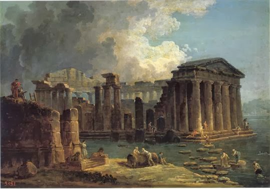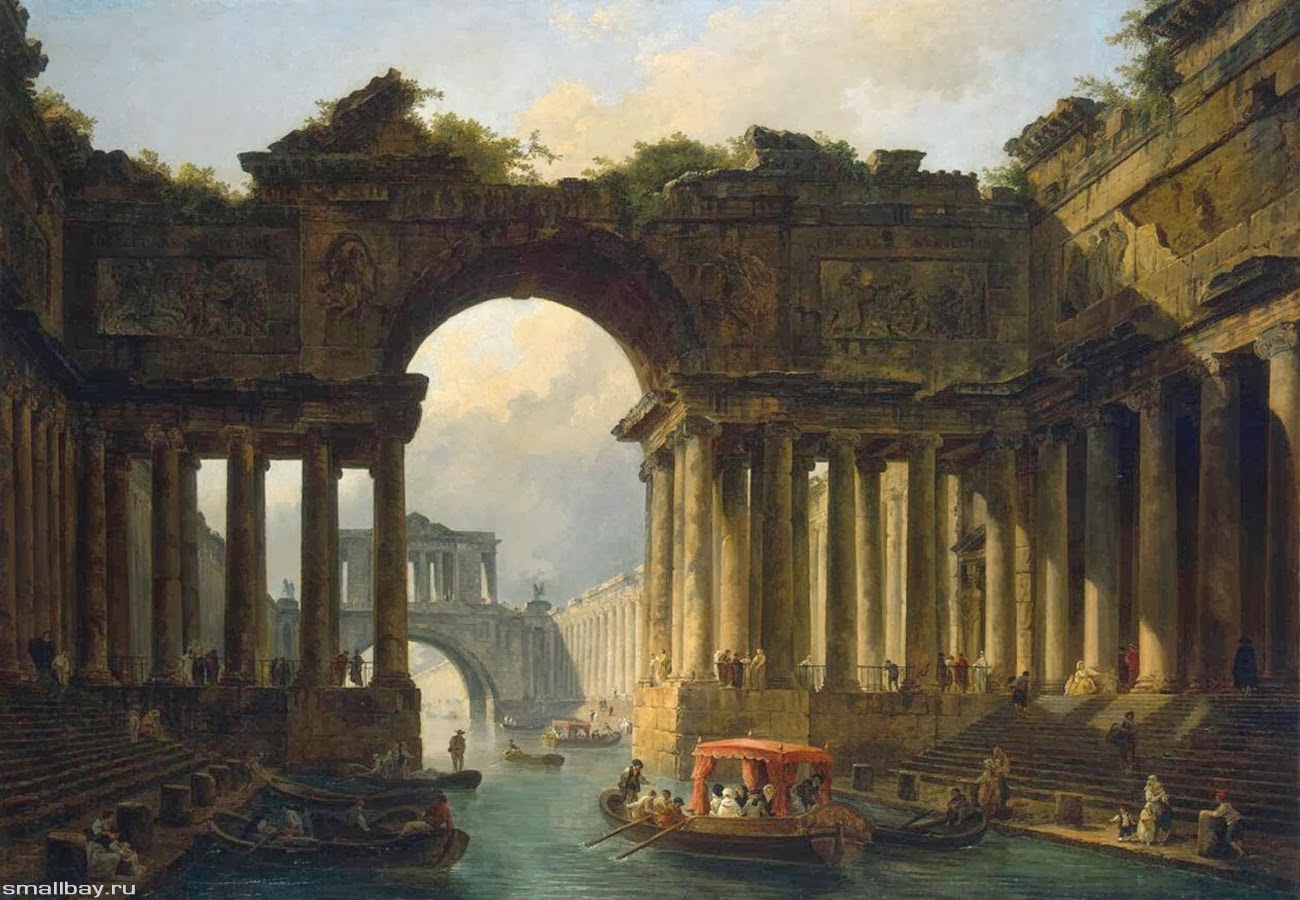Открыть | ЗакрытьОткуда город? Глава 17.1 Свидетели потопа. Античность в картинах и рисунках Робер Юбер (1733-1808) Французский живописец, мастер архитектурного пейзажа. Сейчас принято считать, что писал он свои картины в жанре «архитектурной фантазии», изображая преимущественно античные руины, а также виды парков и сельские пейзажи, но всё ли он выдумал? В его картинах слишком много совпадений не только с римской и греческой античностью, в них есть элементы Ближнего Востока и Египта, где он никогда не был. Юбер Робер родился в 1733 г. Париже, в семье служанки. Живописи учился в Академии художеств у Ш.Ж. Натуара. В 1754-65 гг. в качестве пенсионера академии жил в Италии, путешествовал по стране вместе с Ж.О. Фрагонаром. Поэтика руин формируется уже в его рисунках сангиной, сделанных на вилле д`Эсте под Римом. Вернувшись на родину, жил преимущественно в Париже. В 1775 г. принимал участие в реконструкции парка в Версале. С 1784 г. - хранитель Лувра. Картины Робера, выставлявшиеся в Салонах, быстро завоевали популярность. Д.Дидро хвалил его за «прекрасные и величественные руины». Художник активно разрабатывал модную тему, создавая как штучные произведения, так и целые циклы, рассчитанные на оформление больших интерьеров. Органично сочетал свои «архитектурные фантазии» с повседневными жанровыми деталями («Гарский мост»); при этом достоверные виды нередко «украшал» придуманными деталями («Разрушение моста Нотр-Дам», 1786-88, Музей Карнавале, Париж). Во время Великой французской революции, заподозренный в нелояльности к новому режиму, был арестован и посажен в тюрьму, где продолжал работать, оставив ряд живописных образов тюремного быта. После освобождения варьировал прежние мотивы, в новых же произведениях иногда склонялся к романтической фантастике, представляя в виде руин вполне сохранные здания («Воображаемые руины Большой галереи Лувра»). Его картины украсили многие дворцы, а затем музеи Европы, в том числе и в России, где его вещи охотно приобретали, начиная с эпохи Екатерины II. В старости был практически забыт, однако его образы с их тонким ощущением контрастного взаимодействия разных исторических эпох оказали большое влияние на развитие романтизма. Умер в Париже в 1808 г. - - - Еще один замечательный художник Джованни Баттиста Пиранези (итал. Giovanni Battista Piranesi, или Giambattista Piranesi; 1720-1778) - итальянский археолог, архитектор и художник-график, гравер, рисовальщик, мастер архитектурных пейзажей. Оказал сильное влияние на последующие поколения художников романтического стиля и - позже - на сюрреалистов. Джанбаттиста Пиранези родился 4 октября 1720 г. в Мольяно-Венето (близ города Тревизо),в семье каменотёса. Настоящая фамилия семьи Piranese (от названия местечка "Pirano d’Istria",откуда поставлялся камень для построек) приобрела в Риме звучание "Piranesi". Отец его был резчик по камню, и в юности Пиранези работал в мастерской отца "L’Orbo Celega" на Большом канале, которая выполняла заказы архитектора Д.Росси. Обучался архитектуре у своего дяди, архитектора и инженера Маттео Луккези, а также у архитектора Дж. А. Скальфаротто. Изучал приемы живописцев-перспективистов, брал уроки гравюры и перспективной живописи у Карло Дзукки, известного гравера, автора трактата по оптике и перспективе (брат живописца Антонио Дзукки); самостоятельно изучал трактаты по архитектуре,читал произведения ан