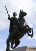 "Медный всадник" под другим углом зрения. Блистая бронзой над Невою, И тучам чресла теребя, Он сыт водою дождевою, Чужая тут ему земля. Зудят гранитные оковы, Вдали от вражеских колонн... И Македонский Саша снова Идёт на древний Вавилон. Из записей Бакмейстера Ивана Григорьевича, библиографа Екатерины Великой, "у неё уже был изваян образ ПЕТРА Великого", который и поныне еще хранится, однако же, оный не удовлетворил желаемому намерению. Обыкновенное подножие, на коем большая часть подобных изваяний утверждены, не означает ничего и не способно возбудить в душе зрителя новой благоговейной мысли. Памятник, ЕКАТЕРИНОЮ воздвигнутый, долженствовал соответствовать достоинству благороднейшим и величественнейшим образом. Избранное подножие к изваянному образу российского ироя должен быть дикий и неудобовосходимый камень, на котором представлен он скачущим на коне с распростертою правою рукою. Новая, дерзновенная и много выражающая мысль! Камень сам себе украшением должен напоминать о тогдашнем состоянии державы и о трудностях, кои творец оной при произведении своих намерений преодолевать был должен. Сколь прекрасно сходствует избранная аллегория со своим предметом, доказывается тем, что ПЕТР Великий имел печать, на коей он был изображен во образе каменосечца, высекающего из камня статую женской особы, то есть Россию. Спокойное положение всадника изображает неустрашимое мужество и дух ироя, величество свое чувствующего и никакой опасности не ужасающегося. Скач яростного коня, достигающего вершины каменной горы, показует скорость его дел и благополучный успех в произведенных неутомимым своим трудом в державе своей переменах. Правая распростертая рука есть знак повелевающего, верных своих подданных благословляющего и о благосостоянии своих владений пекущегося Отца Отечества. " - это цитата из "Исторического известия о изваянном конном изображении Петра Великаго сочиненное коллежским ассессором и библиотекарем Имп. Академии наук Иваном Бакмейстером / Переведено Николаем Карандашевым. — СПб.: Тип. Шнора, 1786". Первоначальный текст был на немецком. О чём говорит данный текст, он говорит о том, что памятник по всей видимости наклонился (или вообще упал), как говорится находился в аварийном состоянии, из-за чего был отправлен на реставрацию, в результате которой был подвержен небольшой переделке, а именно: голову и правую руку отпилили, и припаяли к нему уже совершенно новые детали, другой формы. Вот версия выдуманная для потомков, так удачно вписавшаяся в академический труд Отрывок из письма Фальконе Екатерине II: Автор Каганович А. Медный всадник. История создания монумента. - 2-е изд., доп. - Л.: Искусство, 1982. стр.150. Вполне "подходящий документ" для потомков, у которых могут возникнуть всяческие вопросы по наличию шва в районе головы и плеча на цельной отливке памятника...