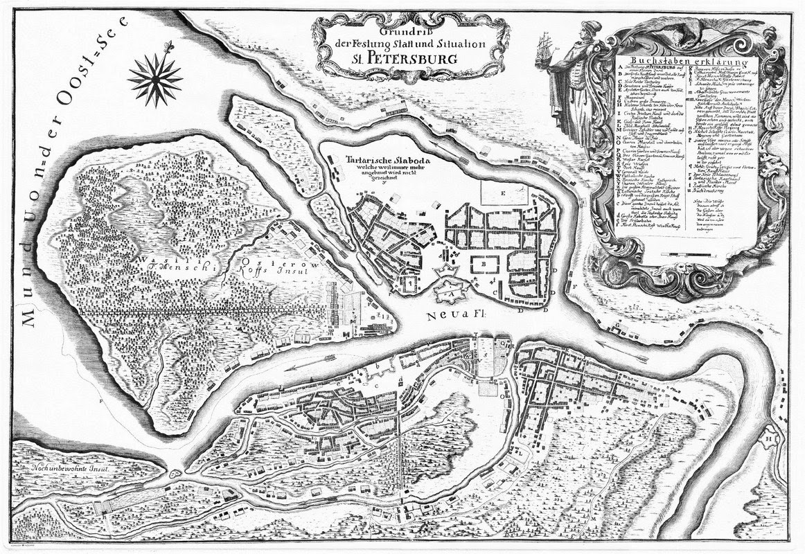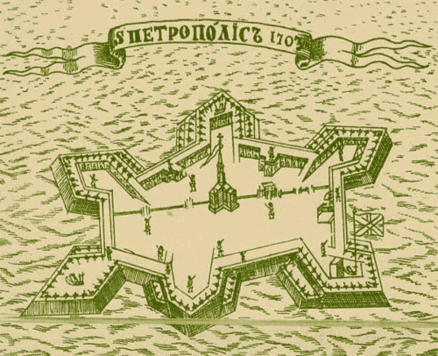 По этой ссылке обалденная подборка карт городов. http://www.swaen.com/zoom.php?id=4399&referer=item.php http://www.swaen.com/zoom.php?id=3734&referer=item.php Они больше похожи не на проекты застройки, а на проекты реконструкции. Необходимо оговориться, что сохранившиеся исторические сведения об основании Петербурга не отличаются безусловной достоверностью. В Преображенском походном журнале говорится, что 11 мая Петр поехал сухим путем в Шлиссельбург, 14 мая был на сясском устье, 16 мая проехал еще далее, и 17 мая прибыл на Лодейную пристань. Таким образом, если верить этому дневнику, 16 мая Петра не было в Петербурге. Поэтому многие принимают за день основания новой столицы 29 июня 1703 года, когда совершена была закладка храма святых Апостолов Петра и Павла. Достойно внимания также, что ни в каких современных документах имя Санкт-Петербурга не упоминается ни в мае, ни в июне того года; местность эта сохраняла имя Шлотбурга. Но на картах начала 18 века Петропавловская крепость уже стоит, не островок, а именно крепость, с чётко обрисованными границами.Вот такая она сегодня, только снял с гуглмапс, те же шесть лучей, а сколько её строили по истории? И ещё... И. Э. Клейненберг обнаружил известие о Васильевском острове, лежащем в устье Невы, в ливонском документе 1426 года, странно, не правда ли?