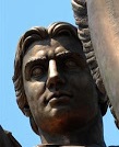 Нынешний памятник (колону) венчает фигура ангела работы Бориса Орловского. В левой руке ангел держит четырёхконечный латинский крест, а правую возносит к небу. Голова ангела наклонена, его взгляд устремлён на землю. По первоначальному проекту Огюста Монферрана, фигура на вершине колонны опиралась на стальной прут, который позже был удалён, и при реставрации 2002—2003 годов выяснилось, что ангел держится за счёт своей собственной бронзовой массы. Мало того, что сама колонна выше Вандомской, фигура ангела превосходит по высоте фигуру Наполеона I на Вандомской колонне. Чертам лица ангела скульптор якобы придал сходство с лицом Александра I. Кроме того, ангел крестом попирает змея, что символизирует мир и покой, которые принесла в Европу Россия, одержав победу над наполеоновскими войсками. Лёгкая фигура ангела, спадающие складки одежды, чётко выраженная вертикаль креста, продолжая вертикаль монумента, подчеркивают стройность колонны. Сначала Монферран хотел установить на Дворцовой площади обелиск, но царю эта идея не понравилась. В итоге колонна высотой 47,5 м стала выше всех аналогичных монументов мира: Вандомской колонны в Париже, колонны Траяна в Риме и колонны Помпея в Александрии. Диаметр столпа - 3,66 м. Колонна сделана из розового гранита, вес - 704 т, ее венчает ангел с лицом Александра I. Пьедестал памятника украшают бронзовые барельефы с орнаментами из бронзовых доспехов, а также аллегорическими изображениями побед русского оружия. С ангелом на колонне тоже не всё просто, лично мне сложно отнести его к мужскому роду. Наличие груди, бёдер, мягкости очертаний тела... и сама поза статуи говорит о том, что перед нами женщина. А историки стоят на том, что Ангел, как две капли похож на Александра Первого, за что колону и назвали Александровской, хотя профиль у ангела слишком уж греческий. Скриншот взят с фильма "Реставрация Александровской колонны" Для сравнения Вот так выглядели все греческие Венеры, Афродиты, Дианы.... Как бы вы отнеслись вот к такой статуе, если бы её назвали "Александр I на троне"??? "Александр I на охоте"??? ...или "загорающие Александры"??? Идентичность статуи на колонне признана официальной наукой, давайте идентифицируем всё остальное. Вот ещё один Александр I, сравните сами... Таких Александров в Питере на каждом шагу.... Один ярый сторонник официальной версии сходства Ангела на колонне с императором Александром I, прислал вот эти фотографии. Выкладываю как есть. Они конечно больше похожи на издевательство... но разве не издевательство - та история, в которую нас заставляют верить.