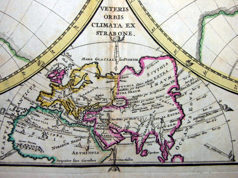 Примеров множество. Взять хотя бы Россию. С запада на восток: 1240 год – шведы разбиты Александром Невским; 1612 год – поляков одолели Минин и Пожарский; 1709 год – победа Петра I в Полтавской битве; 1812 год – поражение Наполеона; Первая мировая война – вторглись германцы, но ушли обратно; 1918 год – отступает претендовавшая на российские территории Антанта; 1944 год – советские войска выбивают со своей земли гитлеровцев. Но и походы с востока на запад большего результата не дали: будь то неудачные попытки захвата западных земель Иваном Грозным, или перешедшая через Альпы в 1799 году армия Суворова, или добравшиеся до Парижа войска Александра I, или поднявшие над Рейхстагом красное знамя советские солдаты – все, так или иначе, вернулись обратно в Россию. Исключения, пожалуй, составляют лишь те завоеватели, которым удавалось завладеть пересекаемыми Меридианом землями (Александр Македонский, римляне, монголо-татары, турки, английские колонизаторы и так далее). Кстати, походы в противоположные от этой таинственной черты стороны, наоборот, часто венчались успехом. Европейцы покорили Америку, а русские – Сибирь, Дальний Восток, Аляску. Пулковский меридиан – судьбоносная полоса планеты. Представьте себе, всего лишь на минутку, северный полюс в районе горы Кайлас. Вы скажете у автора буйное воображение, не спешите с выводами, пойдём дальше… Для наглядности я возьму глобус и переверну его на 90 градусов. Гора Кайлас окажется в районе нынешнего северного полюса, рассмотрим картинку. Санкт-Петербург в аккурат попадает на широту античных городов Греции, пирамид Египта и Черногории, подводных городов Йонагуни и Нан Мадола. "Великий янтарный путь" и "путь из варяг в греки" тютель в тютель укладывается в эту широту, которая так-же пересекает Индонезию (затерянный континент Му) со своими тысячелетними храмами и памятниками. Мегалиты Карелии тоже ровненько лежат на этой линии, даже всем известная золотоносная Колыма и та облюбовала эти широты. Сфинкс Гизы на этой широте вполне может омываться обильными дождями или оказаться под водой, да и сама Сахара становится не такой знойной и безлюдной. Гренландия, оказавшись на экваторе, открывает потерянную Гиперборею, сползает ледяная шапка с Антарктиды, сместившийся полюс оказывается в Тихом океане на острове Пасхи (если Кайлас – крыша мира, то о. Пасхи – пуп земли). Вы скажете вымысел? Возможно, не мне с Вами спорить, но… Как же много этих самых НО насобиралось за последние годы. К примеру, откуда взялись вот эти книги? Первое издание книги, 1768 год. Крестьяне села Безродное отбиваются от крокодилов, напавших на скот. Иллюстрация из книги 1768 года. Вот тут очень интересный фильм, подтверждающий ...и пальмы, и крокодилов, и тропическую температуру на нынешнем северном полюсе. http://www.youtube.com/watch?v=5TismsDo0s8#t=1089 Карта Птолемея Карта Птолемея считается самой древней из дошедших до нас. На ней нанесена координатная сетка, очень похожая на современную.И самое главное - широта пирамид вместе с экватором выделена у Птолемея жирной красной линией, к чему бы это? Может античность Питера не такая и дутая, а наличие всадника на Буцефале, не выбивается из системы, а наоборот органично в неё вписывается? При таком раскладе на свои места становятся карты Пири Рейса, Оронтия Финея, Герхарда Меркатора, Филиппа Буаше, и других древних картогр