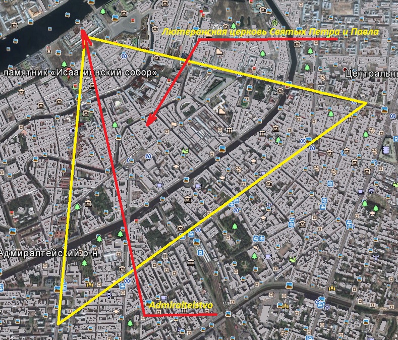 В добавок к сказанному. Мы уже знаем о строгой ориентации на север-юг всех крупных мегалитических сооружений, пирамид, храмовых комплексов, так вот: Исаакиевский собор, как и Зимний дворец ориентированы на север точно так-же, как и "театр" в Помпеях, Баальбек в Ливане. Совпадение? Возможно. Но они ориентированы не на нынешний полюс, а на полюс "допотопный", а вот постройки за чертой центров городов не ориентированы никак.
