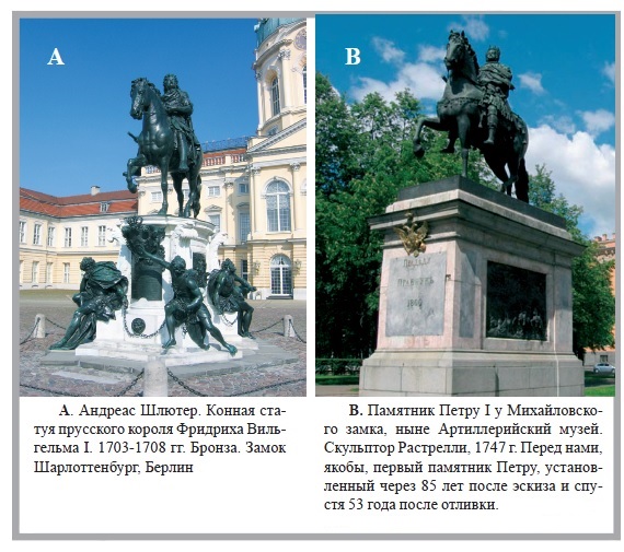 Вам ничего не напоминает постамент к памятнику? Иллюстрированный каталог Художественного отдела Всероссийской выставки в Москве, 1882 г. Часть 1. Будучи школьником, мне в руки попалась книжка по истории, вернее исторический роман, где автор пытался, взяв за основу легенду о пропавшем золотом памятнике Александру Македонскому отыскать его след (золотым он был не весь, только доспехи, шлём и копьё, остальные части из бронзы). Закончилось там тем, что памятник при перевозке из Вавилона, утонул где то в районе о. Мальта. А может доплыл? Зачем его туда везли? Кто его вёз? В книге было сказано, что перевозчиками были рыцари Ордена Святого Иоанна Иерусалимского (Мальтийского креста). Случилось это в аккурат под конец XVII века. Вспомним историю: В 1798 году, когда Наполеон I во время экспедиции в Египет захватил Мальту, рыцари ордена обратились к российскому императору Павлу I с просьбой принять на себя сан Великого магистра ордена Св. Иоанна Иерусалимского, на что последний согласился. В самом конце 1798 года, российский император Павел I был провозглашён Великим магистром Мальтийского ордена. Так вот, к чему я веду: в конце XVII века пропадает памятник А.Македонскому, а в середине 18 появляется обновлённый памятник Петру 1. А может до обновления он выглядел именно так, как на рисунке выше? Ещё один нюанс, этот воин в римских доспехах убивает не змея, как мы привыкли, а грифона - символ Великой Тартарии. К чему бы это? Остатки стройматериала, что использовались при ремонте ещё не убраны. История и не скрывает этого: голову Петра лепила ученица скульптора Э.Фальконе, Мари Анн Колло. Змею по замыслу Фальконе вылепил Фёдор Гордеев. Отливка фрагментов статуи осуществлялась под руководством мастера Емельяна Хайлова и была закончена в 1778 году. Архитектурно-планировочные решения и общее руководство осуществлял Ю. М. Фельтен... и снизу подпись: Автор памятника Этьен Фальноне. Интересно, да? Фальконе, которому никогда прежде не приходилось самому выполнять подобные работы, отказался делать доводку памятника самостоятельно и ожидал приезда французского мастера Б. Эрсмана. Литейщик в сопровождении трёх подмастерьев прибыл 11 мая 1772 года, имея при себе для гарантии успеха всё необходимое: «землю, песок, глину…». Однако долгожданный мастер не смог выполнять требования скульптора и скоро, по настоянию Фельтена, был уволен. Эрсман просто отказался заниматься поставленной перед ним задачей. С этого момента все подготовительные работы к отливке осуществлял сам Фальконе. Чтобы оценить напряжённость обстановки и отношений действующих лиц, нужно привести письмо скульптора от 3 ноября 1774 года Екатерине II, взывавшего к её покровительству: «Всемилостивейшая государыня, в начале прошлого месяца г. Бецкой велел мне через Фельтена написать требования мои относительно завершения отливки (тут следует читать "переделки") статуи, хотя формальность эта показалась мне излишнею, тем не менее я немедленно отправил письмо, с которого прилагаю при сём копию, с тех пор я не получал ответа. Без августейшего покровительства Вашего я нахожусь во власти человека, который с каждым днём более меня ненавидит, и если Вашему Величеству не угодно лицезреть меня более, то мне пришлось бы здесь жить хуже, чем всякому пришельцу, который под конец находит покровителя…» Вот что писал по поводу памят